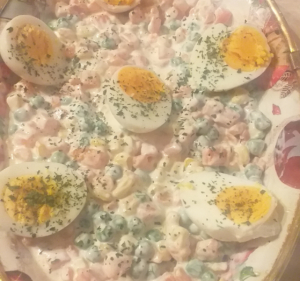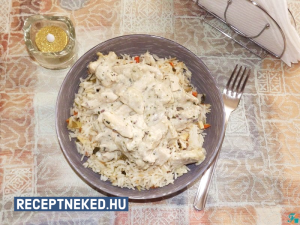 Sült oldalas főtt tojással, gyümölcsös rizzsel