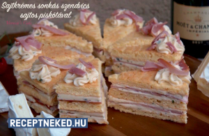 Sajtkrémes sonkás szendvics, sajtos piskótával