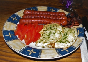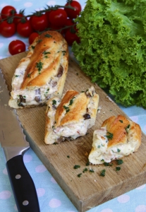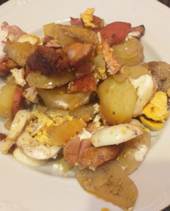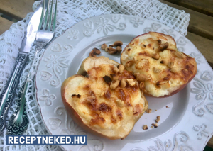 Sajtos-baconos brindzás sült alma pirított mogyoróval