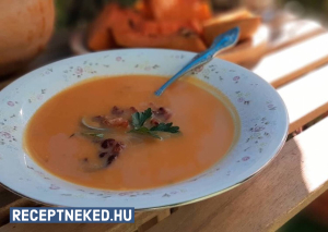 Sütőtök krémleves darált hússal és bacon chipsszel