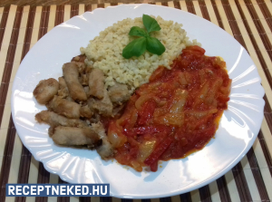 Pirított pulykamell csíkok lecsóval és bulgurral