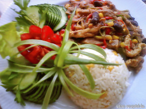 Húsrudak babsalátával