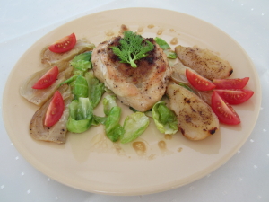 Szezámmagos pulykamell sült zöldségekkel, hollandi mártással