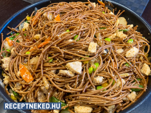 Wokban sült csirkecsíkok zöldséggel és tojásos rizzsel