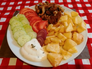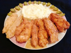 Hamis csirke gordon-bleu ciabattán tálalva mézes-mustáros salátával