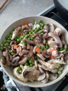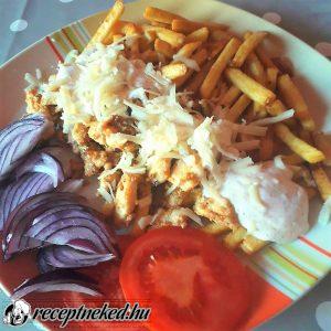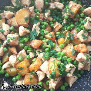 Lilahagymás burgonyabundában sült csirkemell quinoával