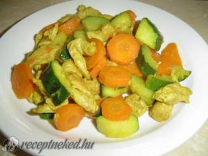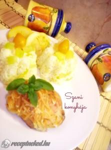 Hamis bolognai sült csirke comb, cukkinis, currys rizzsel