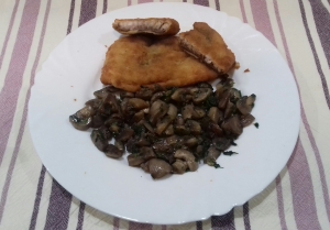 Filézett, rántott ponty petrezselymes pirított gombával