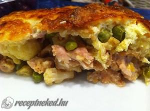 Sonkás-karfiolos-zöldborsós pulykaropogós