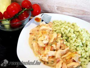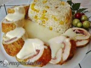Sajtos-sonkás göngyölt csirkemell sajtmártással