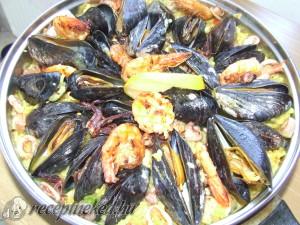Paella tengergyümölcseivel és harcsával