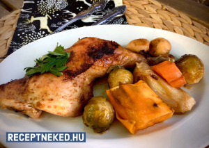 Zöldségágyon sült fűszeres csirkecomb