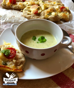 Bazsalikomos cukkinikrémleves mini lepénnyel