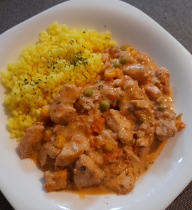 Zöldfűszeres sütőtök érmék csirkemellel és sajtmártással
