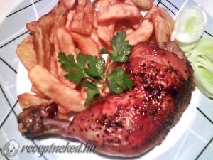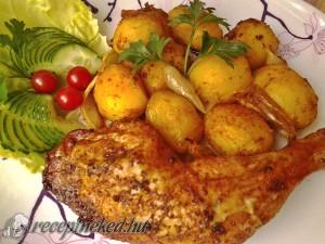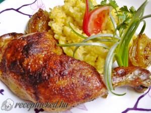 Lilahagymás burgonyabundában sült csirkemell quinoával