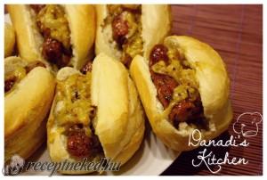 Juharszirupos hot dog dijoni mustáros hagymával