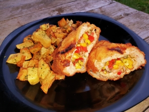 Gesztenyés-áfonyadzsemmel töltött pulykamell hercegnő burgonyával