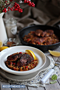 Csípős csirkeszárnyak párolt zöldséggel