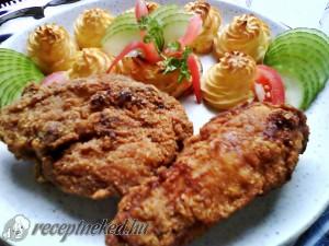 Fokhagymás csirkecomb rántva hercegnő burgonyával