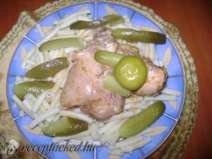 Kakaspörkölt savanyúkáposzta ágyon, cserépedényben
