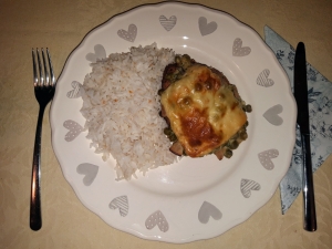 Sonkás-karfiolos-zöldborsós pulykaropogós