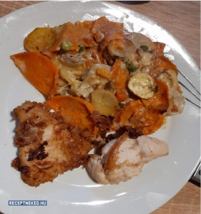 Marinált dagadó sós-kapros burgonyával, juharszirupos sütőtökkel