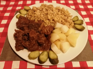 Sertés pörkölt pirított tarhonyával