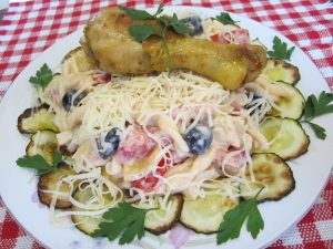 Tésztasaláta cukkíni chipsszel