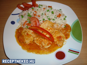 Sült paradicsomos-paprikás csirkemell rizzsel