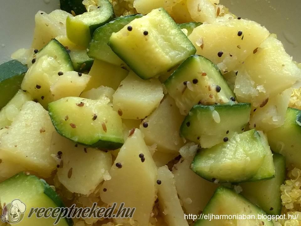 [box style=”info”]Imádom az indiai zöldséges főételeket, mert a csodás fűszerezésnek köszönhetően végtelen változatosságot mutatnak. Hazaérkezve a bio piacról, a szezonnak megfelelően vásárolt alapanyagokat megnézve, az ebéd választásom ma egy cukkinis burgonyás curry-re esett.[/box]