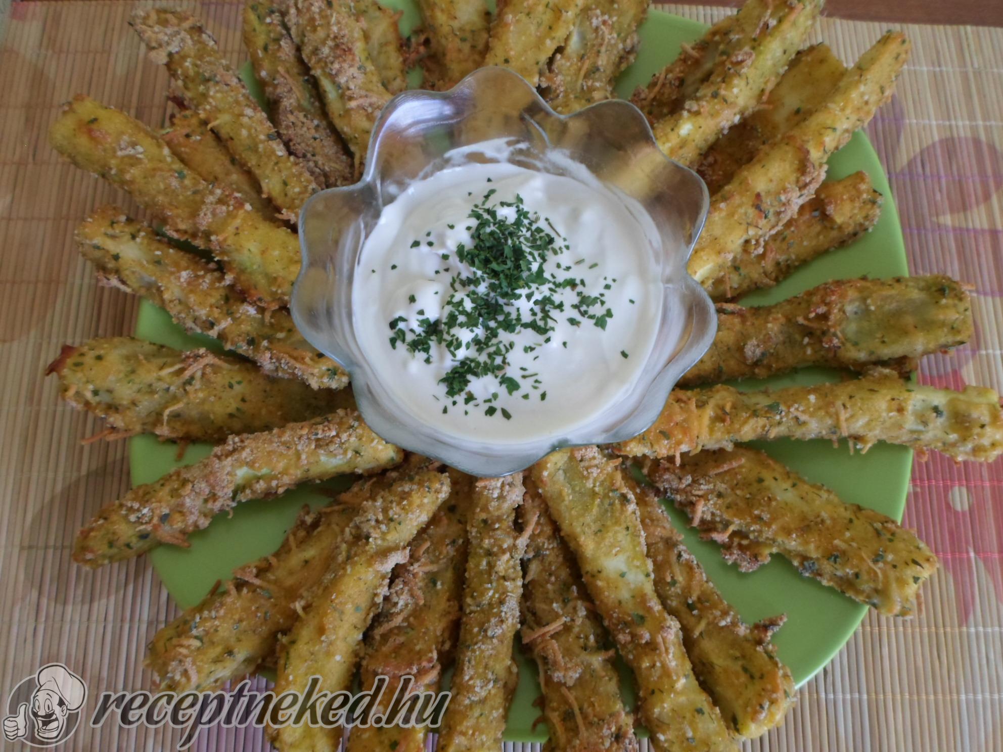 Olajjal kikent tepsibe, halmokat kanalazunk a masszából, kicsit lelapítjuk és előmelegített sütőben, 200 fokon készre sütjük.