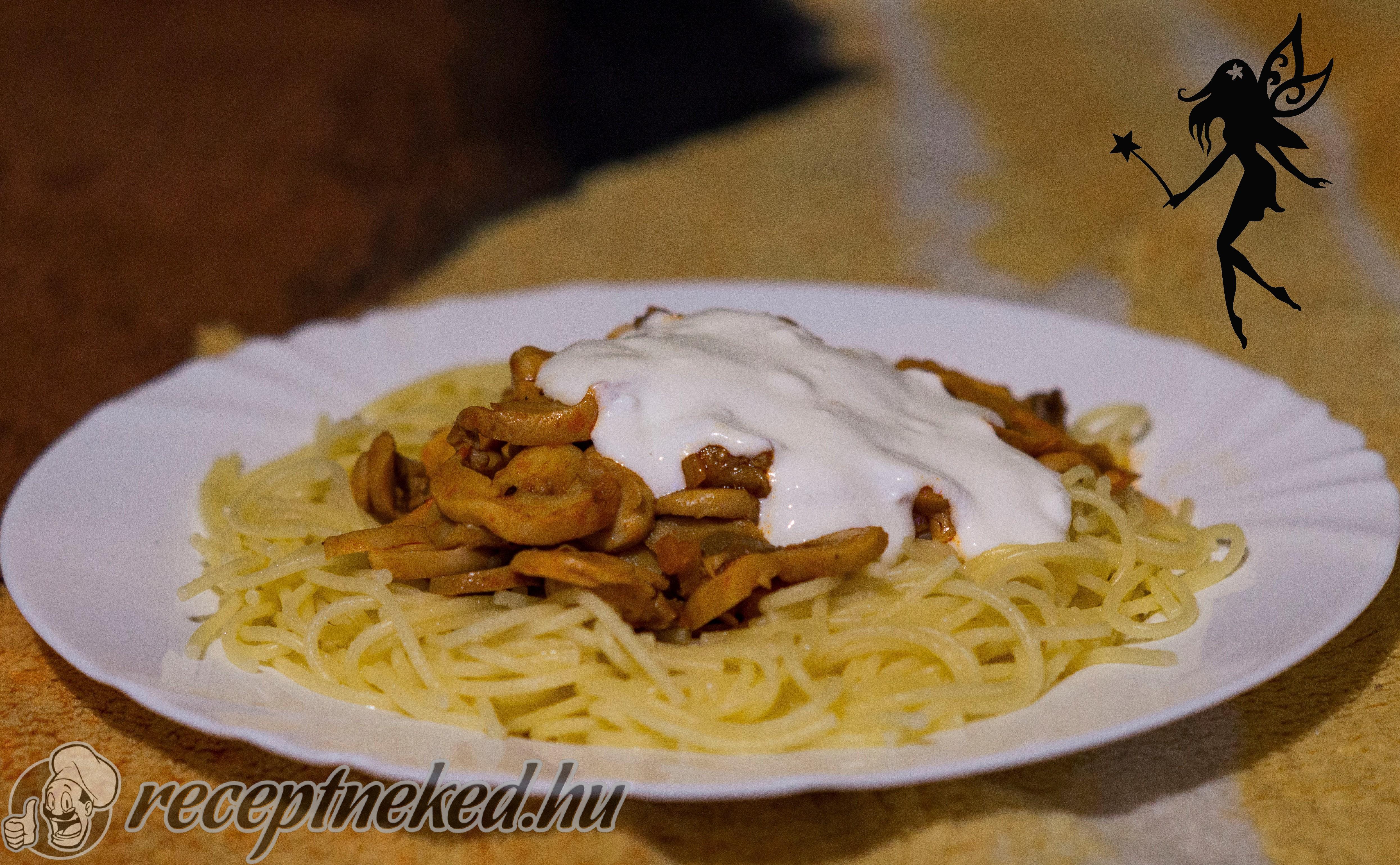 Főtt tésztával, nokedlivel vagy főtt rizzsel tálaljuk.