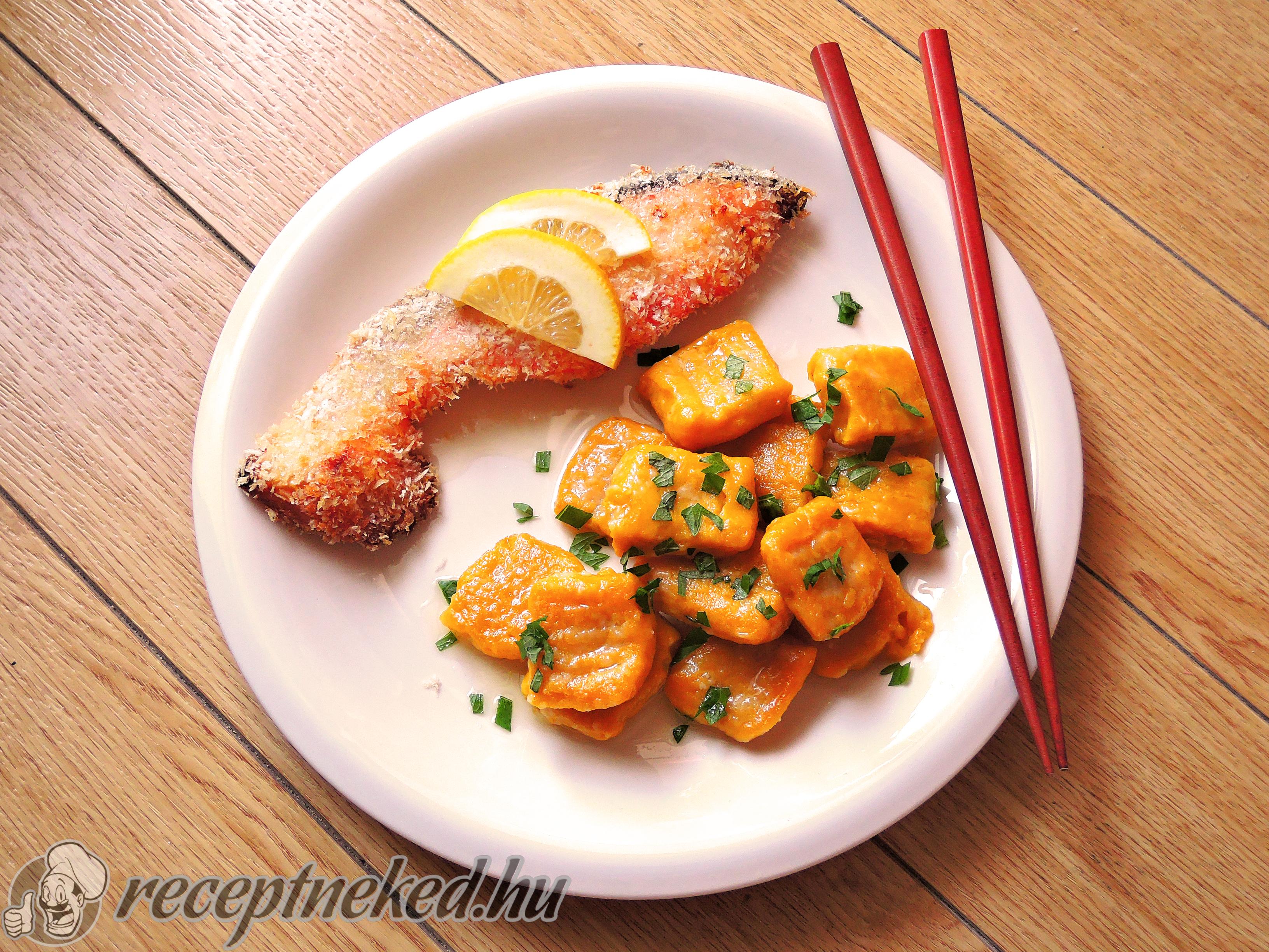 A szokásos módon bepanírozzuk lisztbe, felvert tojásba ,majd végül pankó morzsába a karfiol rózsákat és bő, forró olajban aranysárgára sütjük. Papírtörlőre szedjük és hagyjuk lecsepegni.