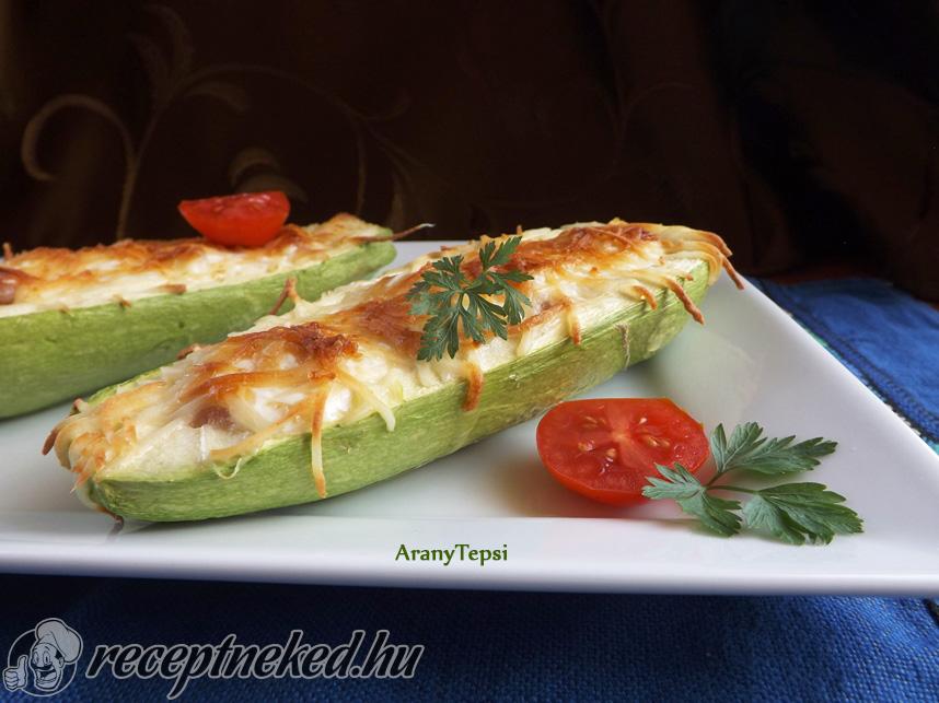 [box style=”info”]Szemlátomást nőnek a kertben a tökök és a cukkinik. Nem hagyom túl méretesre őket, inkább zsengén leszedem, mert így még finomabbak és amúgy is van termés bőven. Amikor levettem pár tököt, még nem tudtam, hogy milyen fogás lesz belőlük. Benéztem a hűtőbe és akkor született meg az ötlet.