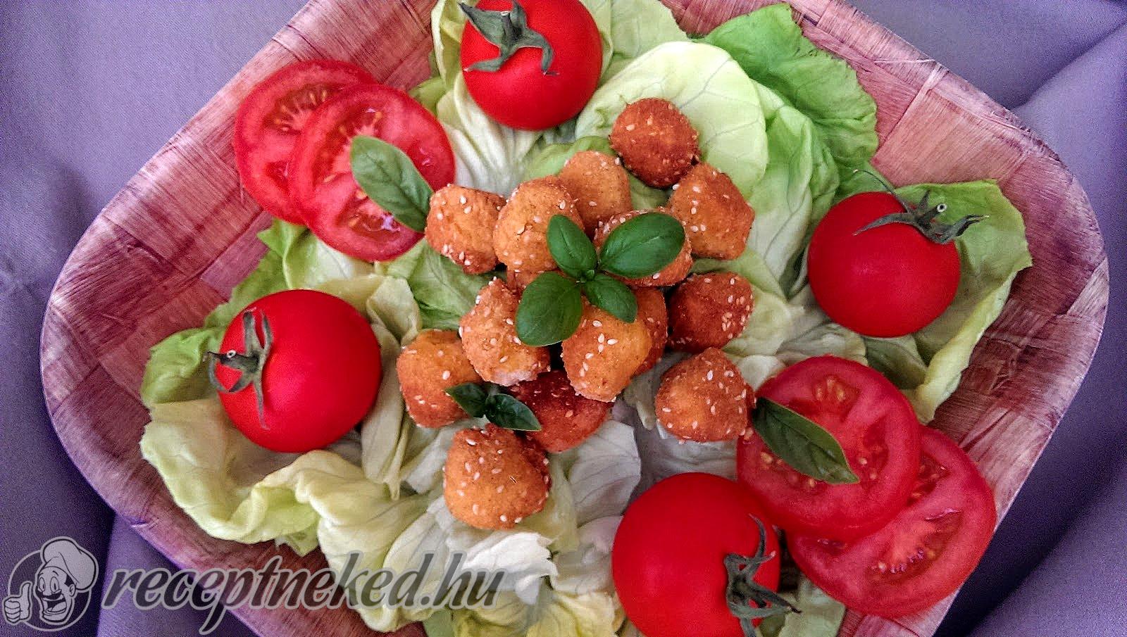 A zsemlemorzsát öntsük egy tálcára, adjuk hozzá a szezámmagot és keverjük össze.