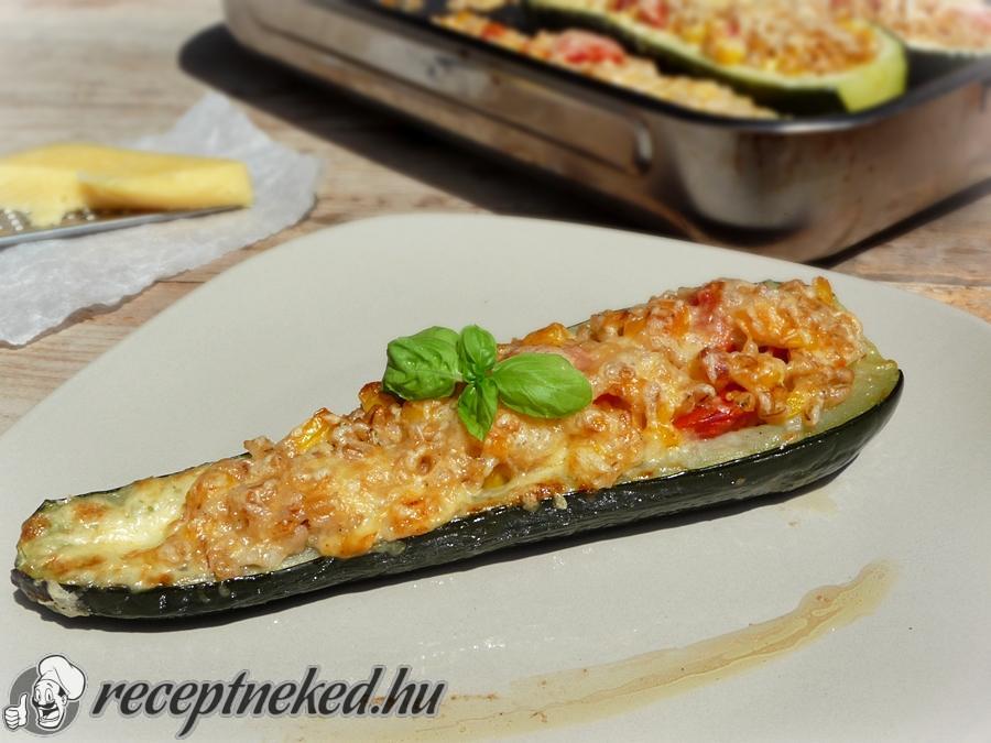 Ezután a cukkiniket töltsük meg az elkészült töltelékkel.