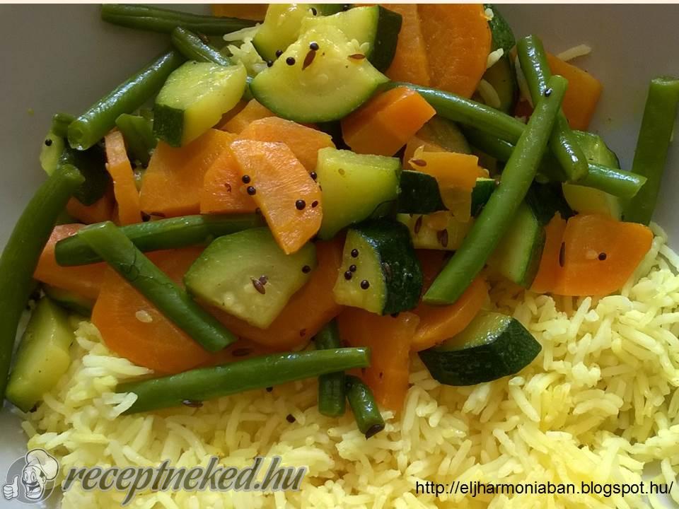 Keverd úgy össze, hogy a fűszerek jól elkeveredjenek a zöldségekkel. Vedd le takarékra és tedd rá a fedőt. 5 perc után keverd meg és takarékon főzd, amíg meg nem puhulnak a zöldségek (kb. 15 p)