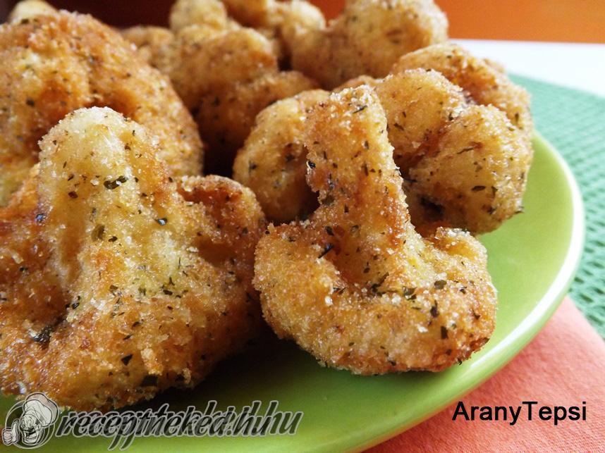 A lecsöpögött rózsákat előbb a lisztben forgatjuk meg, majd a tojásban és legvégül a fűszeres morzsában. Egy magasabb falú edényben bő olajat forrósítunk és pár perc alatt világos barnára sütjük a karfiolokat.