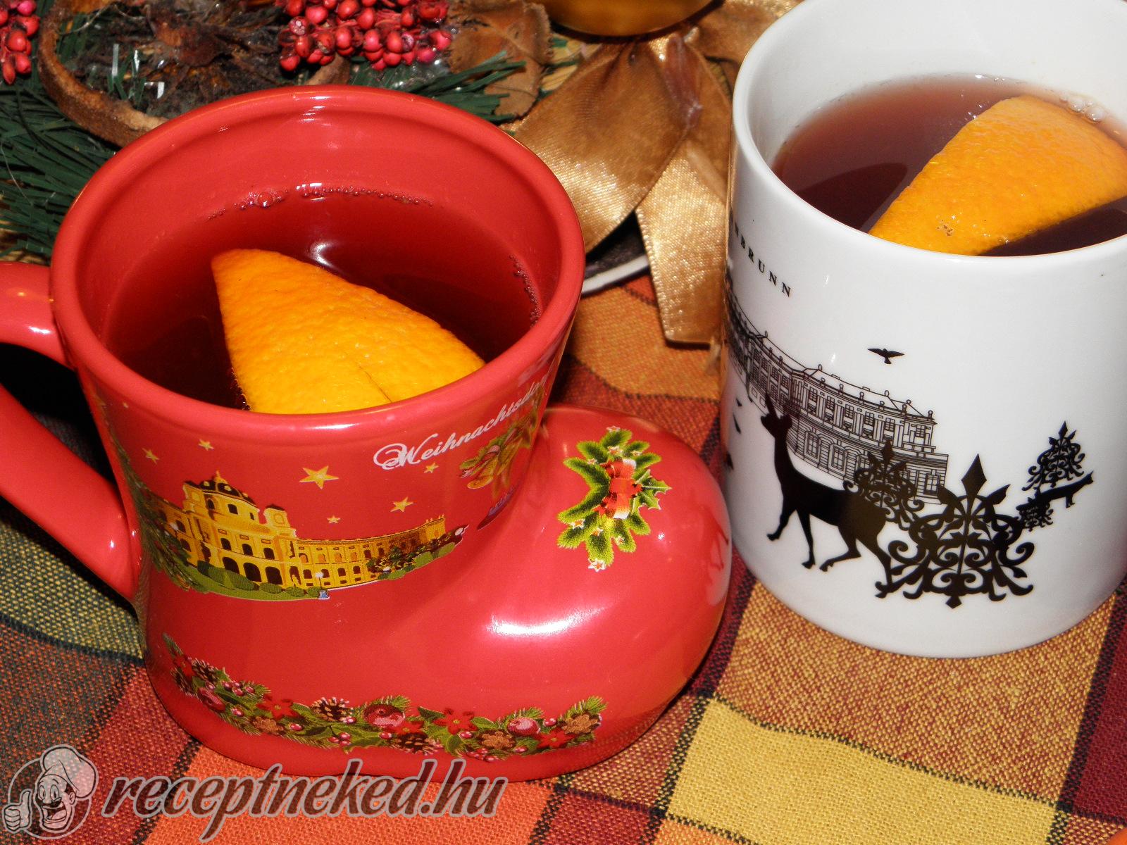 Ezután a rumos-cukros-citrusos keverékhez öntsük hozzá a teát és a forraltbort, majd keverjük össze és szűrjük le.
