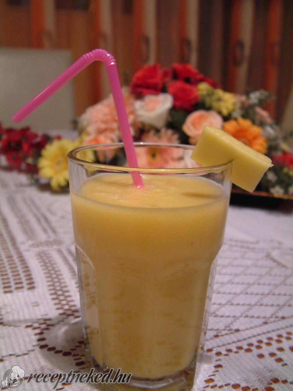 Végül hozzáadjuk az ananászt és azzal is simára turmixoljuk, majd fogyasztható is.