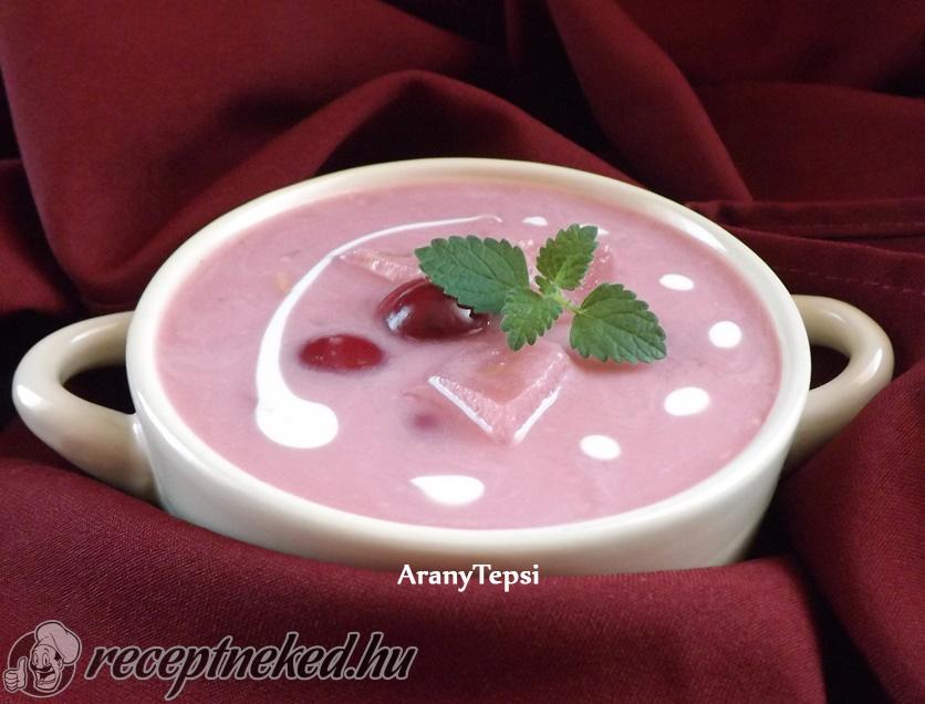 A pudingport a tejszínnel csomómentesre keverjük és a meleg leves levével felhígítjuk (hőkiegyenlítést végzünk). Ha a gyümölcsök megpuhultak, a tejszínt folyamatos kevergetés mellett a levesbe csorgatjuk. Ha már kellőképpen besűrűsödött elzárjuk.