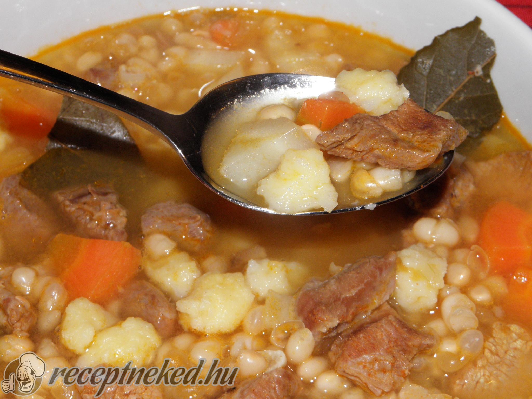 Ezután felöntöm 2,5 liter vízzel, hozzáadom a babot (amiről leöntöttem az áztatóvizet), a babérlevelet, az erős paprikát. Ha szükséges sózom, és 1,5 órát főzöm.