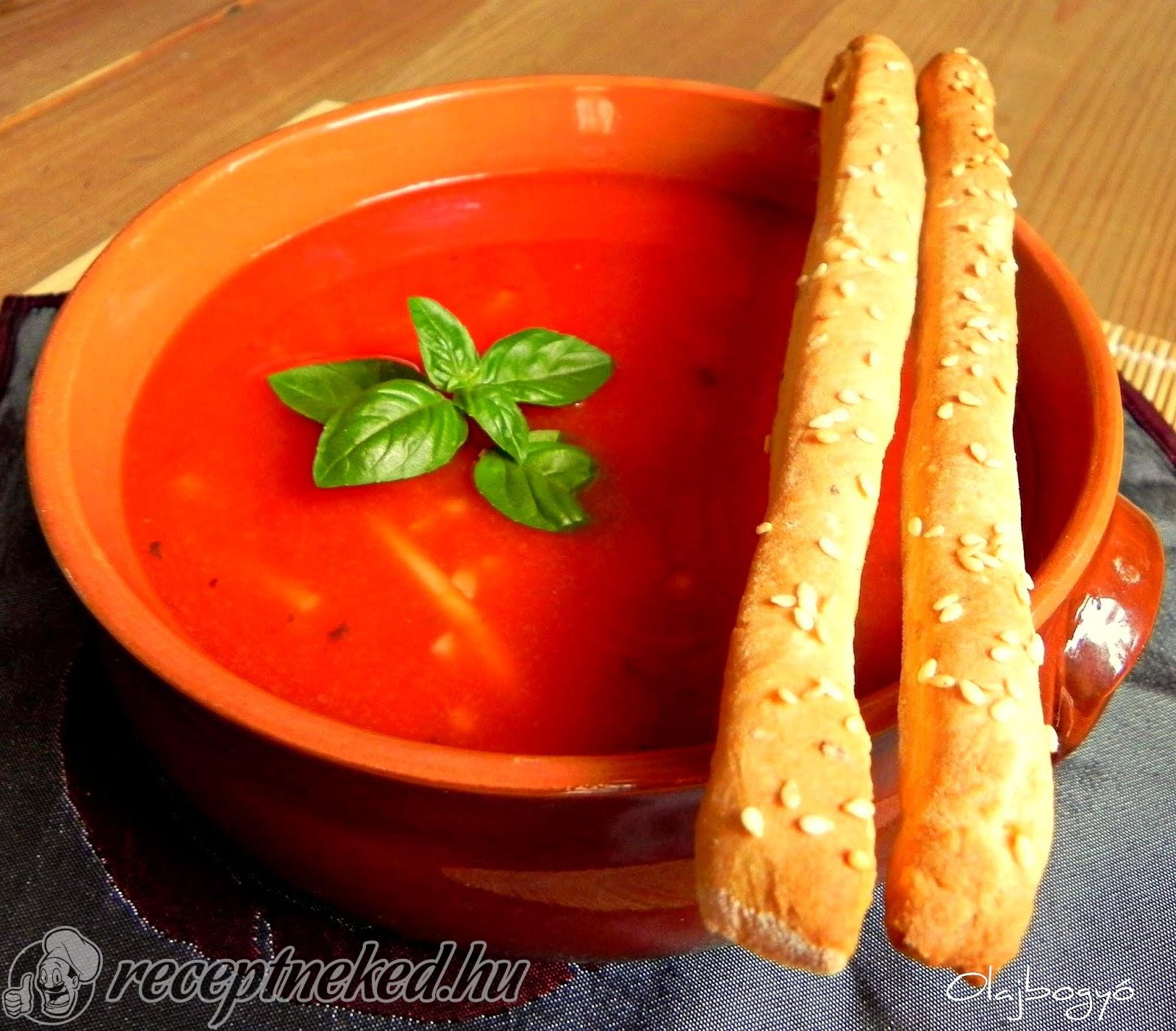 Amikor a paradicsom megpuhult, kivesszük a zellerzöldet, és botmixerrel simára turmixoljuk a levest. Ezután visszatesszük a tűzre, és főzünk bele egy maréknyi leves tésztát, például cérnametéltet vagy apró gyöngytésztát. Végül hozzáadjuk az apróra tépett bazsalikomot, és rövid ideig még állni hagyjuk.