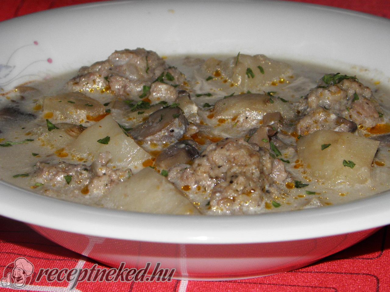Ha felforrt belerakom a húsgombócokat, 30 perc alatt, gyenge forrással megfőzöm.