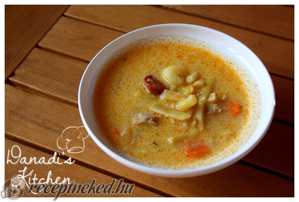 Főzés közben, félidőben, belerakjuk a kockára vágott burgonyát. Amikor a hús és a zöldségek megpuhultak, tejfölből és kevés lisztből habarást készítünk, és ezzel enyhén besűrítjük a levest. Végül citromlével ízesítjük.