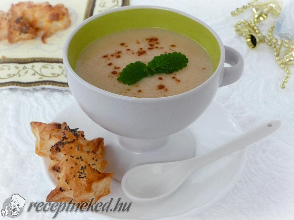 Tálalás előtt hűtsük langyosra, majd merjük poharakba. A tetejét szórjuk meg egy csipet őrölt fahéjjal. Ízlés szerint tejszínhabot is kínálhatunk hozzá.