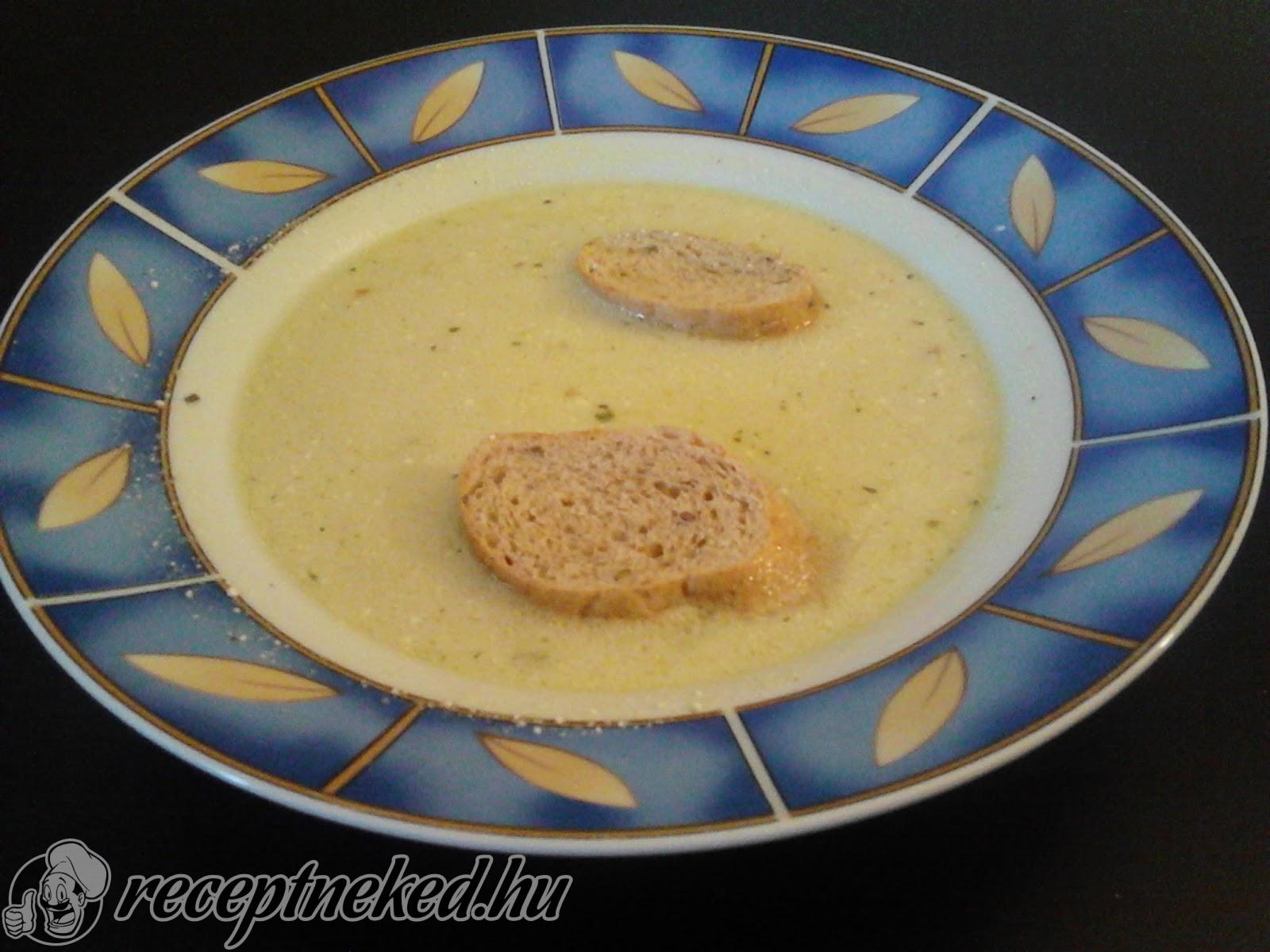 A fokhagymát és a fél lila hagymát vajon üvegesre pirítjuk, majd felöntjük vízzel és a fehérbor felével. Puhára pároljuk, fűszerezzük, majd botmixerrel simára turmixoljuk. A tejfölt egy kis edénybe szedjük, megszórjuk rozsliszttel, öntünk hozzá egy kevés vizet, és simára keverjük. Ezzel a keverékkel sűrítjük be a levest, majd beleöntjük a maradék bort is. Összefőzzük, és már tálalhatjuk is. Pirított zsemlekockával kínálva különösen finom.