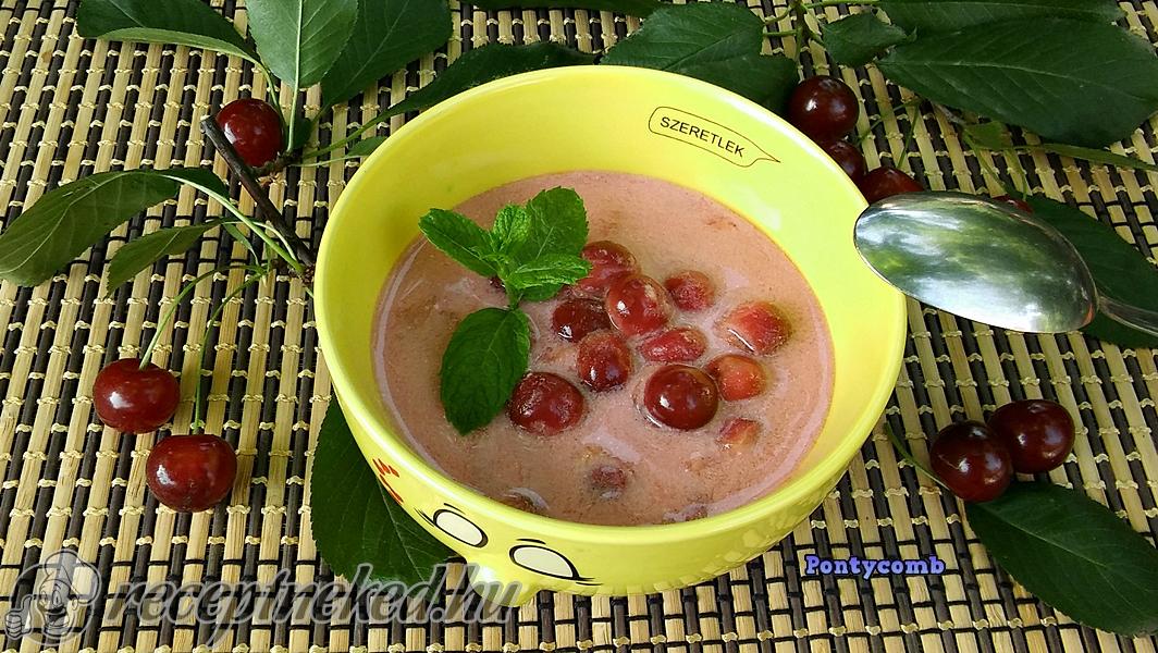 A pudingot kikeverjük az 1 dl tejjel és miután 6-8 percet főtt a meggy, behabarjuk vele a levest.
