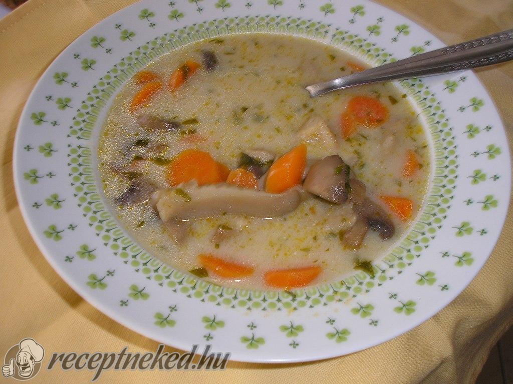 Közvetlenül tálalás előtt szórjuk az átsütött laskagombát a levesbe.