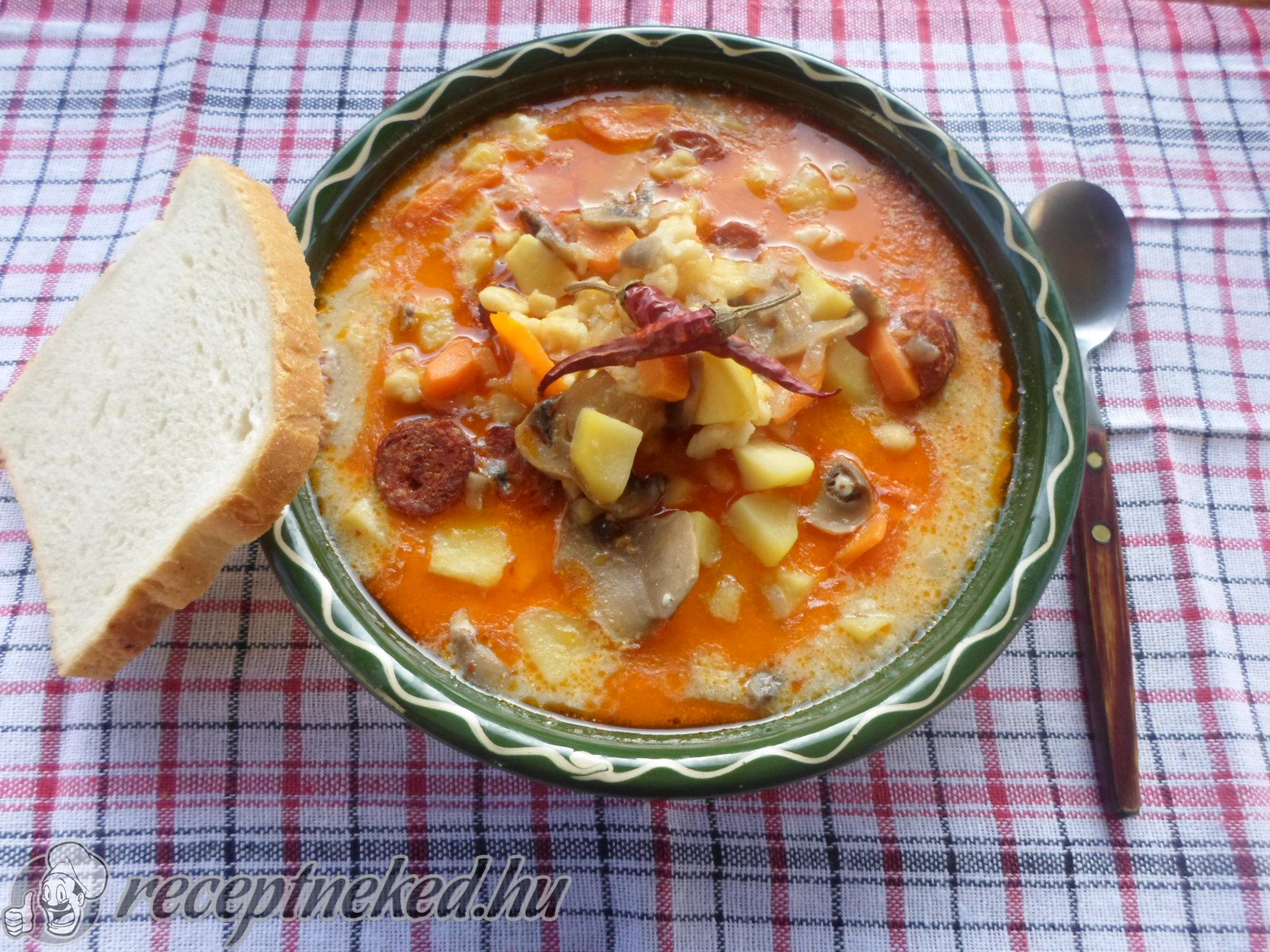 Amikor a leveszöldségek megpuhultak, hozzáadjuk a kolbászos gombát, és további 5 percig főzzük.